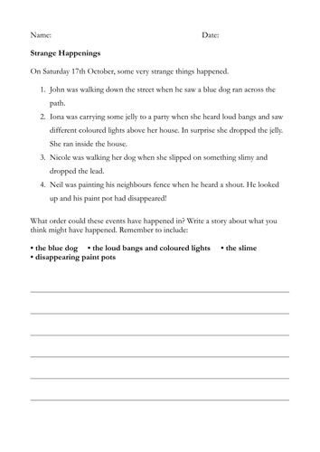 includes: 1) creative writing introduction 2) characters - developing mystery and mysterious figures focused on the signal-man 3) plot development and structure lesson around the signalman 4) structure and endings lesson exploring the Short story writing topic ideas A deep fear that is holding your main character back from moving forward/achieving something End of a relationship Losing a loved one A life goal or journey interrupted A life-altering experience that causes the main character to re-examine his/her/their life A dramatic family secret Pursuing a life dream · doc, MB 4 homework sheets I have used to back up creative writing in class. Each homework sheet has a picture for inspiration and a number of prompts o support childrens writing. Generally well received by children. Let me know what you think. Creative Commons "Sharealike" Reviews Gillian Deller a year ago report4,6/5(31)